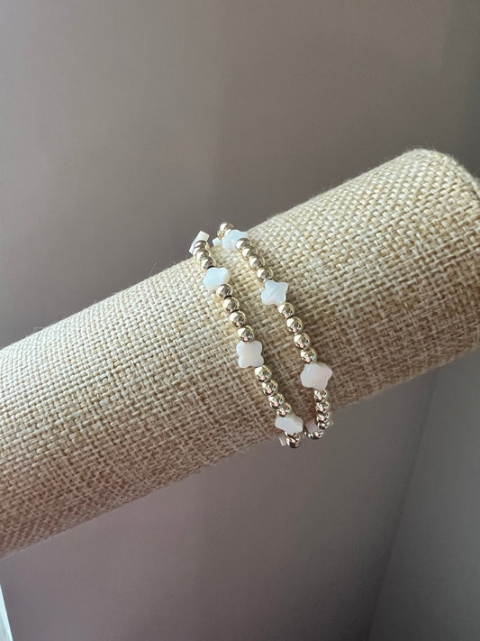 Gold Bracelet with Shell Flower Stack