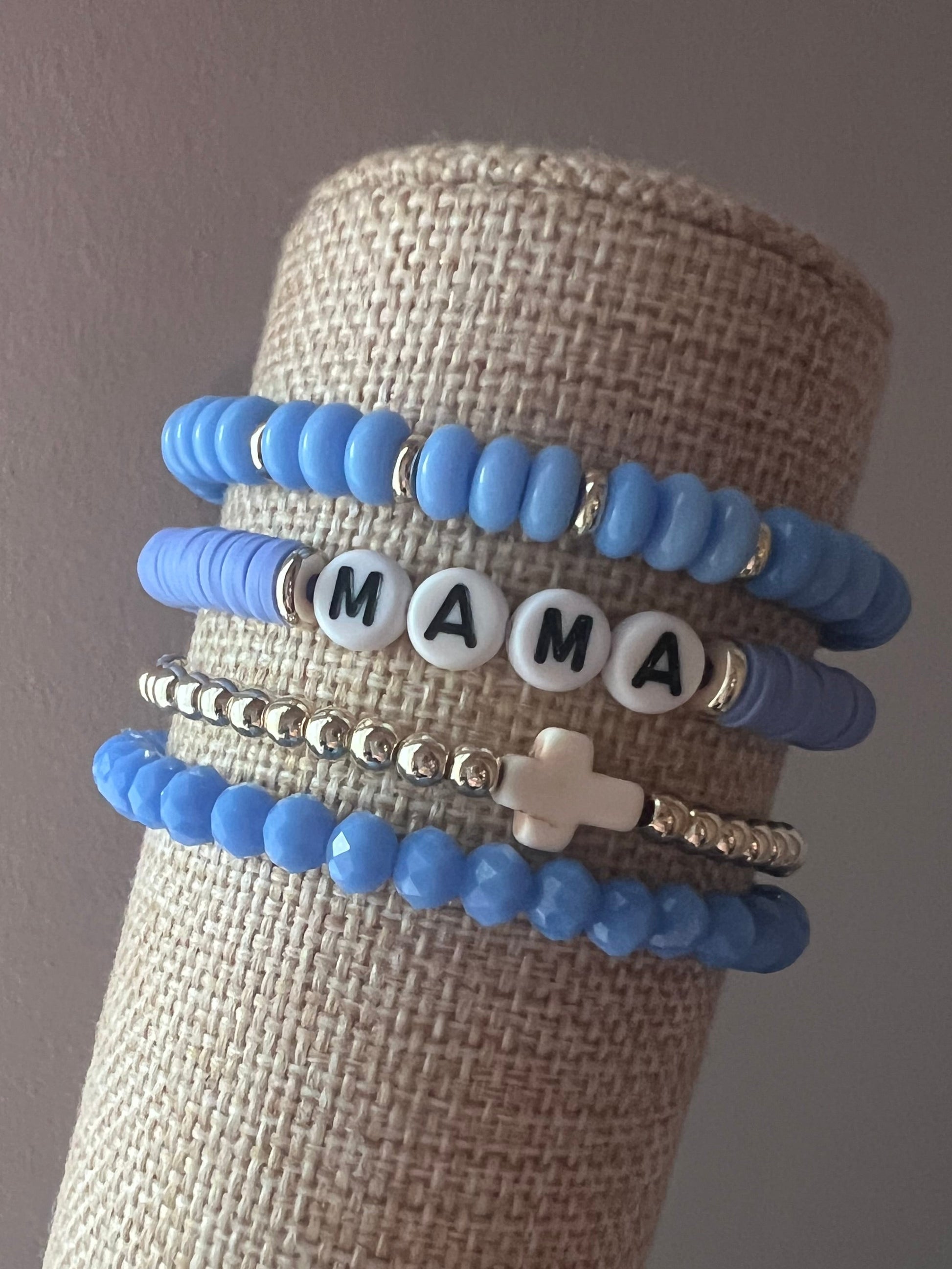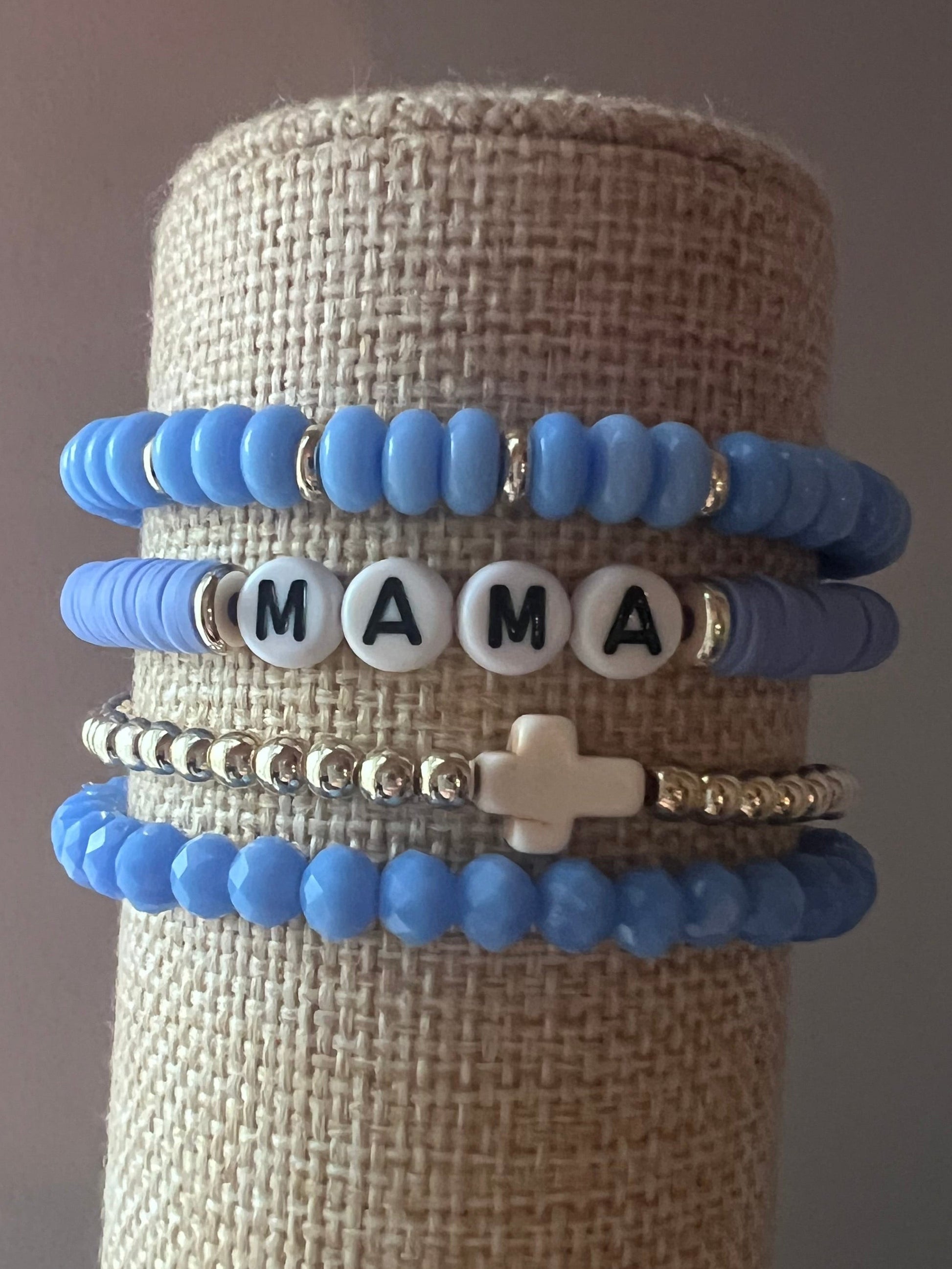 Each bracelet stack in The Mama Collection honors hardworking, Jesus-loving mamas who carry faith into every part of their day. They are a wearable reminder of faith, strength, and God's grace in everyday motherhood.